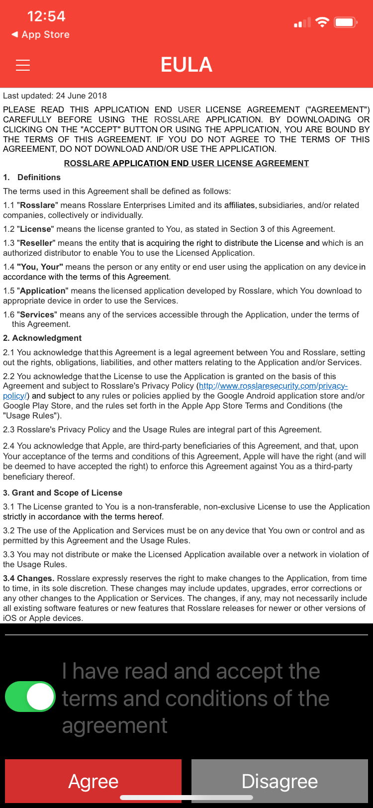 3. Tap on the "I have read and accept the terms and conditions of the agreement